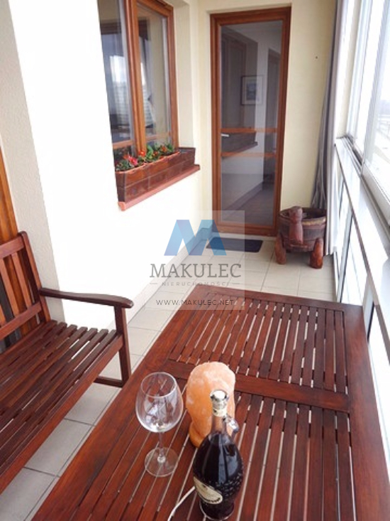 Z salonu oraz sypialni wyjdziemy na przestronną loggię gdzie z powodzeniem mieści się stolik z krzesłami. Jest to idealne miejsce aby po trudach dnia codziennego podziwiać piękne widoki oraz zachody słońca.